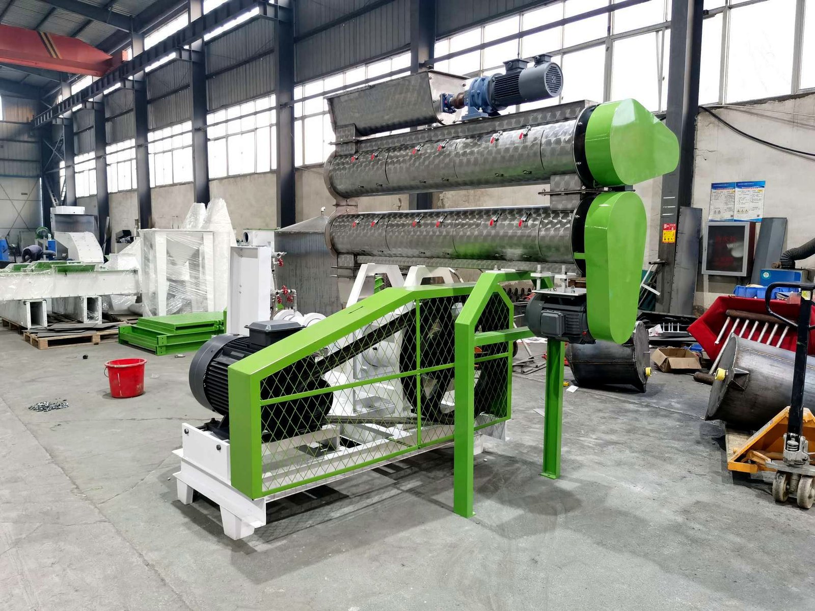 This auxiliary equipment of floating fish feed making machine is mainly to reduce the variation range of material pellet size, improve the working condition of the pulverizer, improve the working efficiency of the pulverizer, and ensure the quality of the product.
